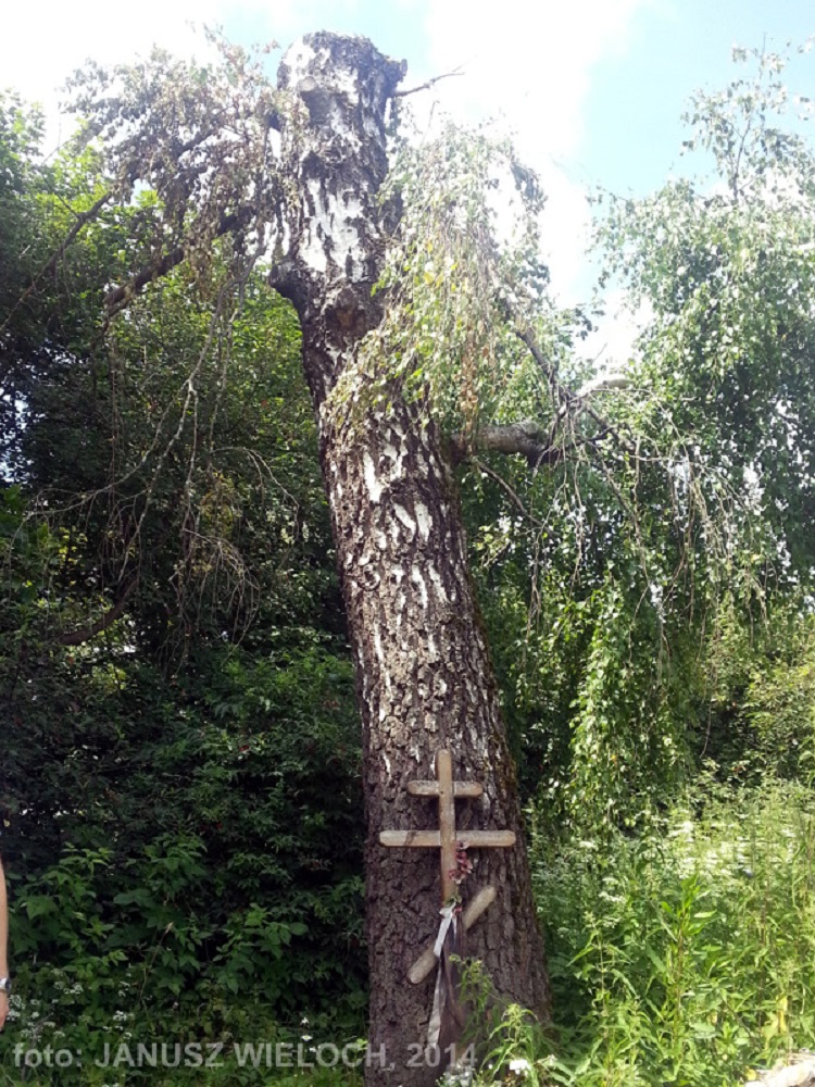 Obraz jest przygnębiający: pod drzewem kilka wypalonych zniczy, wiązanka sztucznych