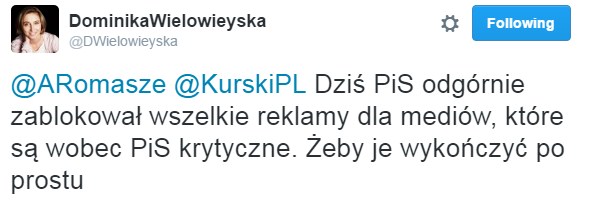 Sugerowano, że rynek reklam jest niezależy od polityki. Teraz jednak okazuje się, że sprawa wygląda w oczach Wyborczej nieco inaczej. Dominika Wielowieyska na swoim twitterze informuje nas bowiem, że rząd... chce wykończyć niektóre media, ponieważ blokowane są reklamy w GW właśnie: