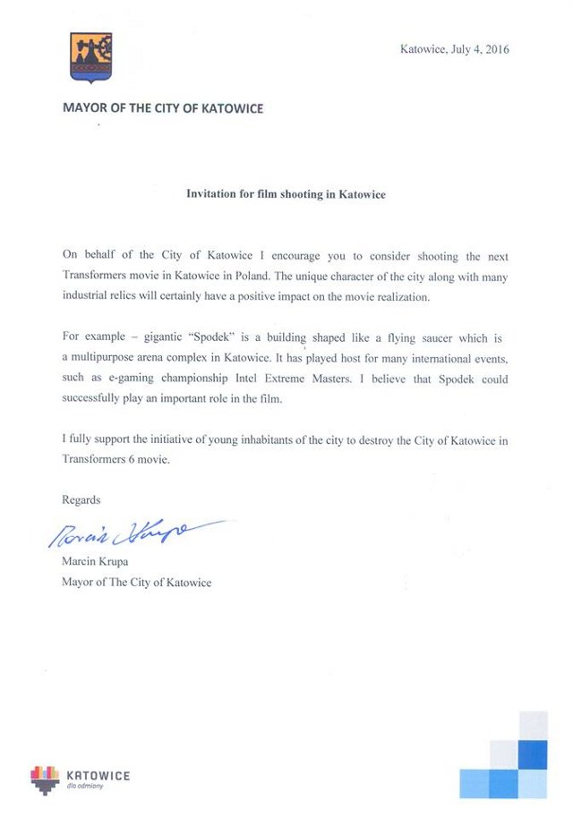 Polscy internauci chcą by w najnowszym odcinku filmu Transformers pojawił się polski wątek. Jak dowiedział się portal niezalezna.pl pomysł poparł Marcin Krupa – prezydent Katowic, który przyznaje, że zniszczenie miasta przez roboty z kosmosu mogłoby nieść ze sobą walory... promocyjne.