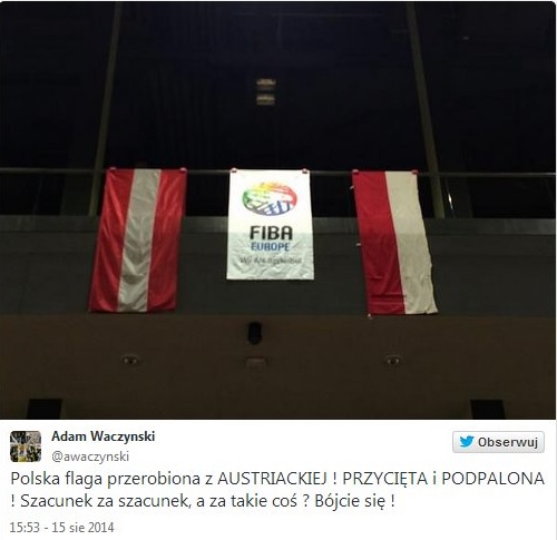 O sprawie poinformował reprezentant biało-czerwonych, Adam Waczyński. Sfotografował flagę i umieścił zdjęcie na Twitterze:
