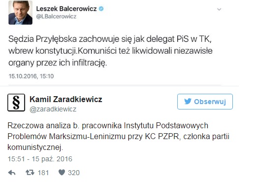 Balcerowicz nie podał konkretów, jednak napisał, że "również komuniści niszczyli niezawisłe organy poprzez infiltrację". Na te słowa z miejsca zareagował prof. Karol Zaradkiewicz, wytykając politykowi, delikatnie mówiąc, niekonsekwencję: