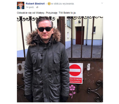 A na Facebooku Robert Biedroń napisał: - Odwalcie się od Wałęsy. Przyznaję: TW Bolek to ja".