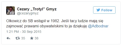 "Do SB płk Olkowicz wstąpił w 1982 r. Przez dwa lata służył w pionie kontrwywiadu w Elblągu. Potem przeszedł do Służby Więziennej. W oświadczeniu lustracyjnym, jako radca prawny, przyznał się do służby w SB".
