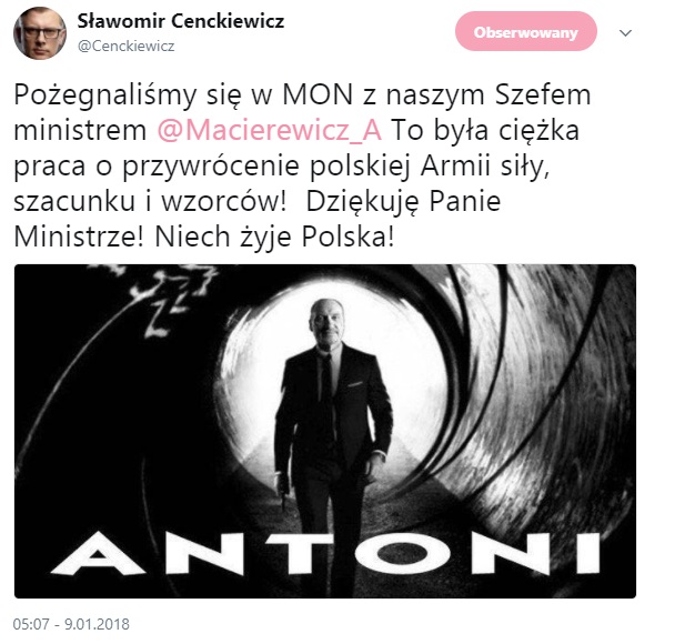 Dyrektor Wojskowego Biura Historycznego, prof. Cenckiewicz utrzymał rekonstrukcyjne emocje na wodzy. Pogratulował nowemu szefowi MON (instytucja, którą kieruje Cenckiewicz podlega resortowi obrony), Mariuszowi Błaszczakowi i z klasą pożegnał jego poprzednika, Antoniego Macierewicza.