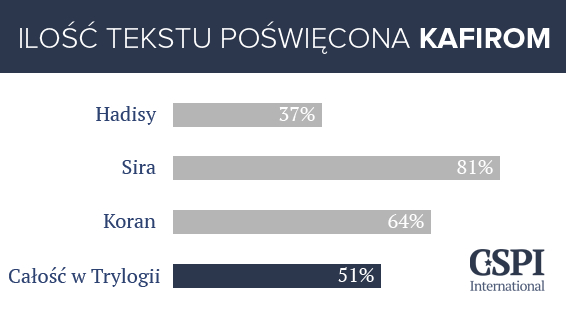 Teksty te w 51% mówią o tym jak niewiernych: upokarzać, gwałcić, rabować, mordować, okredać, opodatkowywać, jakie mają obowiązki w ramach szariatu względem muzułmanów, itd.