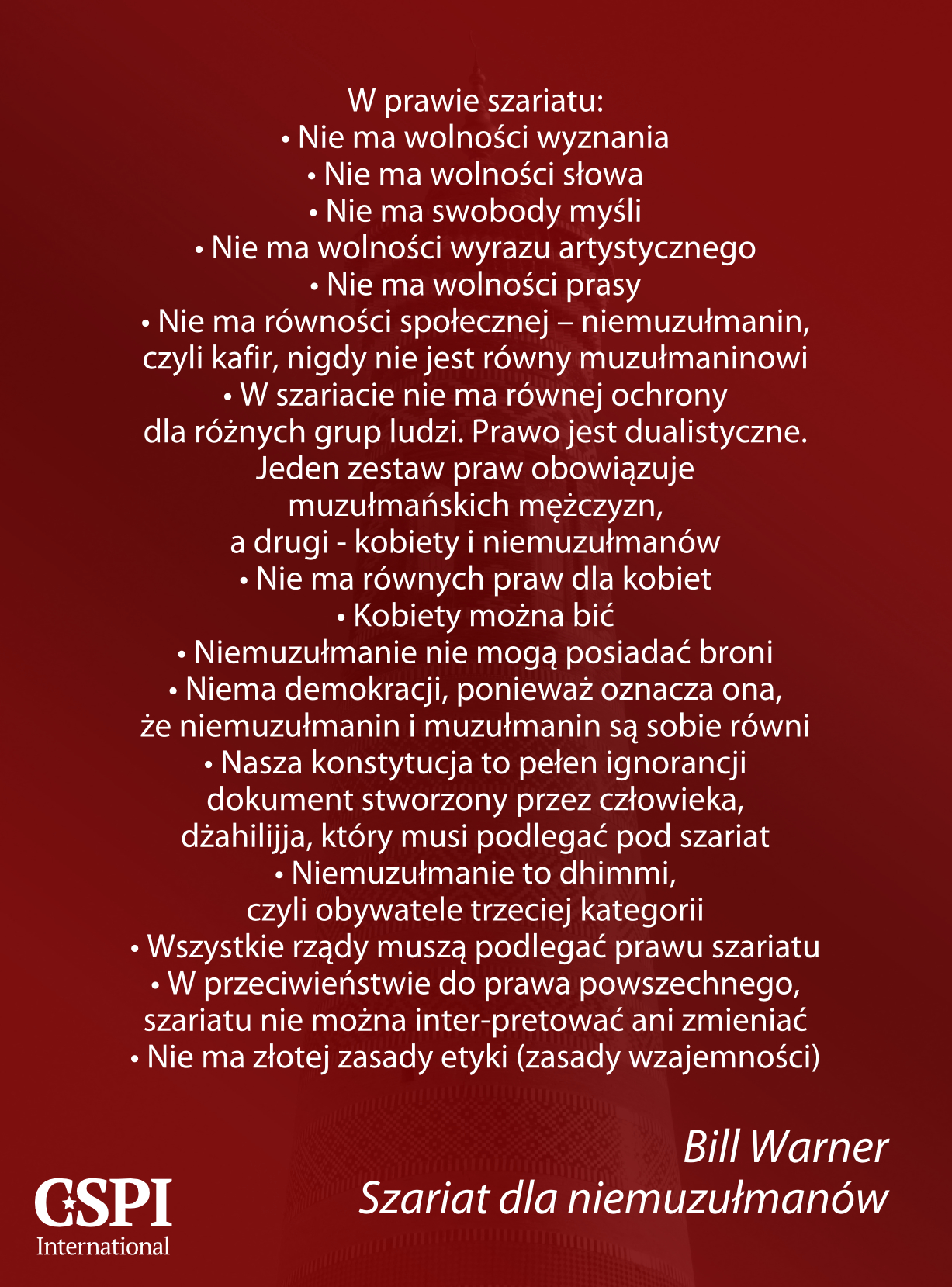 Szariat dla niemzułmanów, Bill Warner -