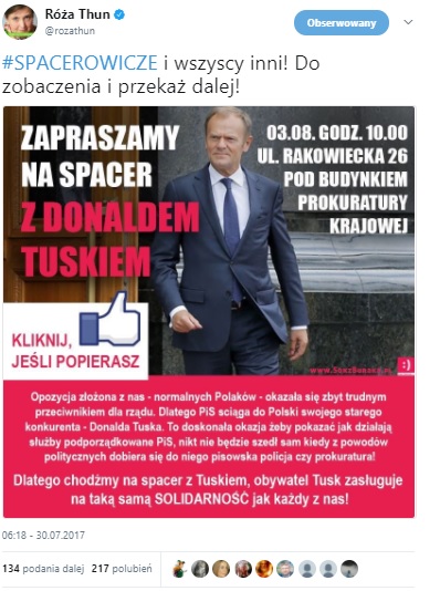 Eurodeputowana Platformy Obywatelskiej, Róża Thun bardzo gorąco zachęcała internautów do okazania wsparcia szefowi Rady Europejskiej.