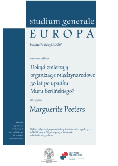'Dokąd zmierzają organizacje międzynarodowe 30 lat po upadku Muru Berlińskiego'- zapraszamy na wykład Marguerite Peeters