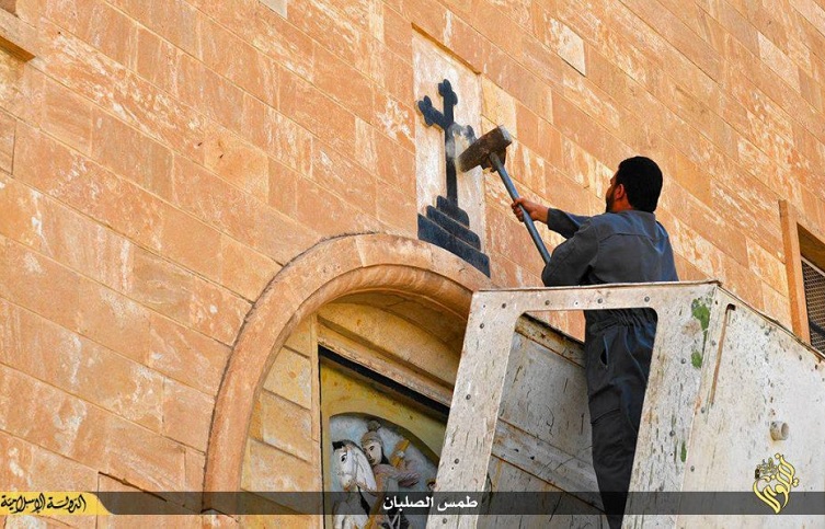 7 marca bojownicy Państwa Islamskiego zniszczyli chrześcijańską świątynię w Mosulu w Iraku. Zdjęcia zostały opublikowane dopiero 16 marca. Zobacz jak islamiści zachowują się w bezpośrednim kontakcie z chrześcijańskimi symbolami? Przerażające, prawda!