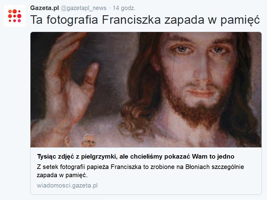 Bezsprzecznie, pontyfikat Franciszka musi być wyjątkowy. To chyba pierwszy papież, który sprawił, że środowisku Gazeta.pl przestał przeszkadzać Jezus w przestrzeni publicznej. Mało tego, wręcz zachwycili się obrazem Jezusa Miłosiernego. Miejmy nadzieję, że zapoznali się także z jego historią, która jest równie piękna, jak wspomniana fotografia.