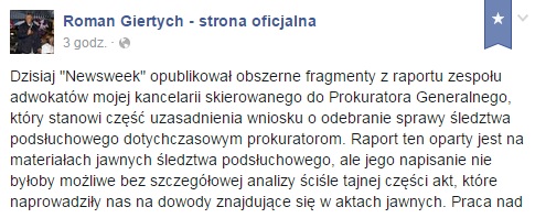 W dalszej części swojego wpisu na Facebooku mecenas Giertych zadaje szereg retorycznych pytań, unikając jednoznacznych stwierdzeń, jakoby afera podsłuchowa była środkiem służącym przywróceniu władzy PiS. Pytania, pytania, pytania, a konkretów i dowodów brak.