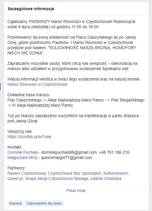 Tego, że cała akcja ma na celu prowokację, dowodzi fakt, że tuż po rozwiązaniu zgromadzenia jego uczestnicy mają wziąć udział w stacjonarnej manifestacji pod samym klasztorem na Jasnej Górze.