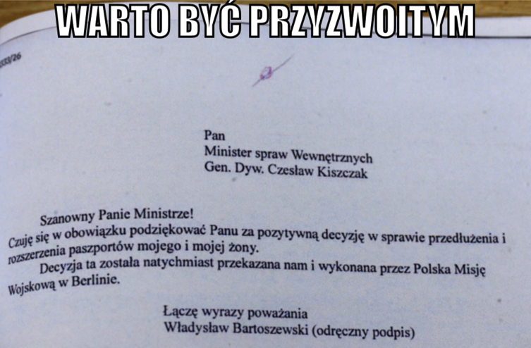 Władysław Bartoszewski napisał do Czesława Kiszczaka tak: