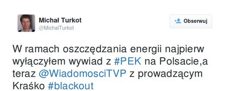 "Polskie Sieci Energetyczne zarządziły 20, najwyższy poziom zasilania. Oznacza to ryzyko awarii systemu elektroenergetycznego. Takiej sytuacji w Polsce nie było od lat 80. XX wieku. Tymczasem premier Ewa Kopacz zdaje się problem bagatelizować. Jej wypowiedzi na temat blackoutu stały się pośmiewiskiem internautów" - informuje niezalezna.pl.