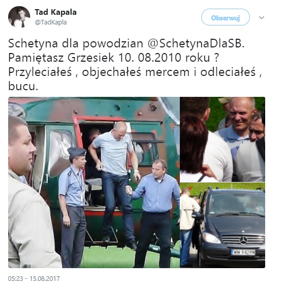 Ten sam internauta napisał również, że Grzegorz Schetyna, który był wówczas Marszałkiem Sejmu i ówczesny prezydent Bronisław Komorowski uciekli przed mieszkańcami, z którymi umówili się na spotkanie.