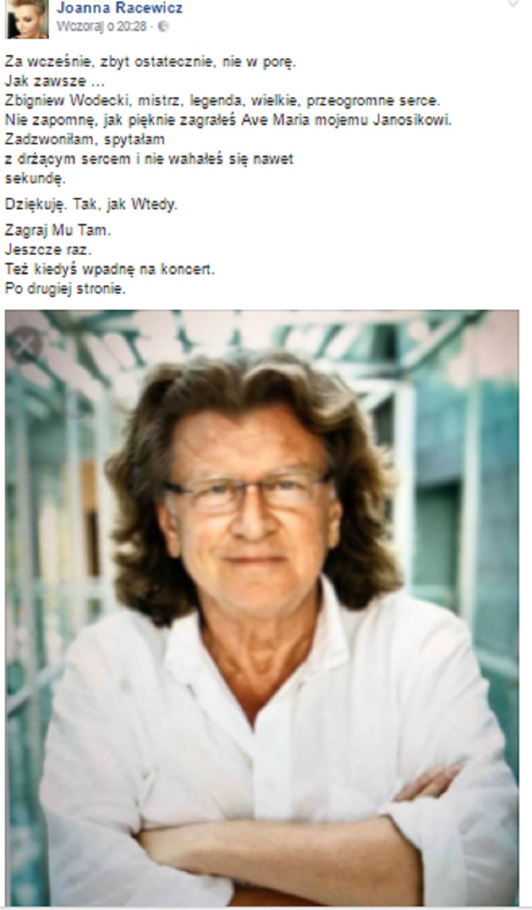 Facebookowy wpis Joanny Racewicz, chwyta za serce. Dziennikarka wzruszająco pożegnała zmarłego wczoraj Zbigniewa Wodeckiego.