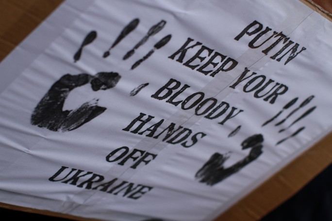 W niedzielę równo o godz. 12 pod ambasadą Federacji Rosyjskiej w Warszawie zebrało sie około 150 osób. Protestowali oni przeciwko polityce Władimira Putina względem Ukrainy.