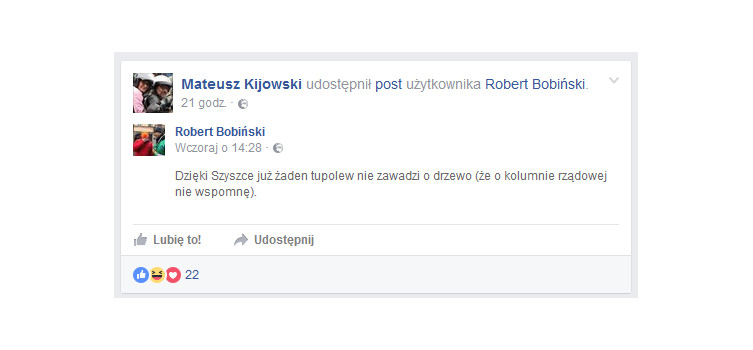„Dzięki Szyszce już żaden tupolew nie zawadzi o drzewo (że o kolumnie rządowej nie wspomnę”