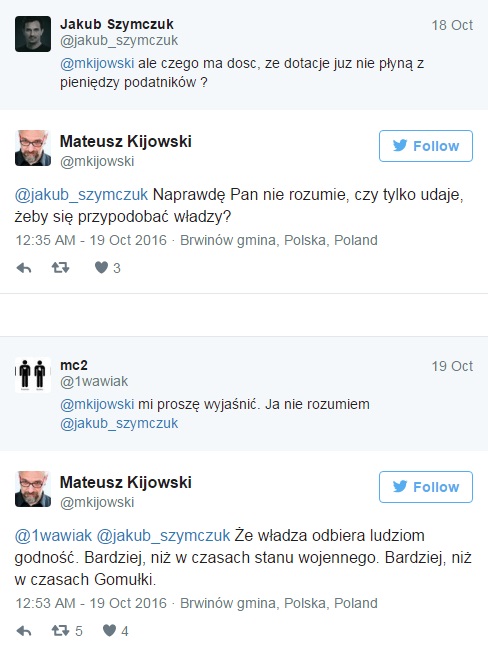 Czy Kijowski w ogóle wiedział, że wczoraj przypadała rocznica okrutnego morderstwa dokonanego na błogosławionym Jerzym Popiełuszce? A jeżeli tak, to czy nie wstydził się wygłaszać takie hasła? Bo aż trudno uwierzyć, by ktoś mógł rzeczywiście ufać w ich prawdziwość.