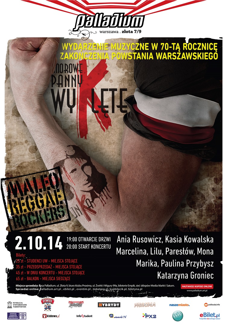 To będzie piękny koncert. Dwa genialne projekty Darka Malejonka (Armia, Houk, 2 Tm 2,3, Maleo Reggea Rockers) "Morowe Panny" i "Panny Wyklęte" na scenie w 70-tą rocznicę zakończenia Powstania Warszawskiego. Z Maleo Reggea Rockers zaśpiewają m.in. Asia Rusowicz, Kasia Kowalska, Marcelina, Lilu, Marika, Paulina Przybysz czy Katarzyna Groniec.