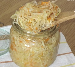 Pewnego popołudnia więc gdym doprawiał wraz ze szwagrem poszatkowaną kapustę przesadziłem z solą !!!No przesoliłem poważnie -) Wcześniej rozgrzewaliśmy się nalewką domową z pigwy (postna jakżeby inaczej-) no i przesoliłem mocno. B.mocno!! Po spróbowaniu wykrzywiało usta. Co tu począć ?Wyrzucić? W tym momencie mnie olśniło. A możne wystarczy dolać wody. Tak też zrobiłem. Pół beczki kapusty i...drugie pół wody. I po paru dniach w cieple...Eureka! Kapusta kiszona ..al dente! Wspaniała, chrupka i sałatkowa. Spróbujcie kapusty kiszonej w solance, jest zachwycająca a jej wspaniały sok znakomicie koi bóle przedawkowania nalewek i nie tylko.-)
