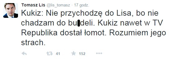 Wypowiedź Kukiza najwyraźniej bardzo ubodła redaktora, gdyż ten postanowił zripostować na Twitterze w charakterystyczny dla siebie sposób: