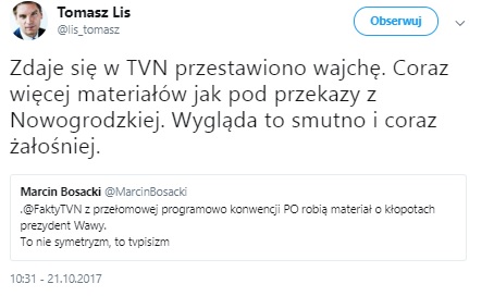 To nie symetryzm, to tvpisizm"- napisał na Twitterze. Co odpowiedział Bosackiemu naczelny "Newsweeka"?
