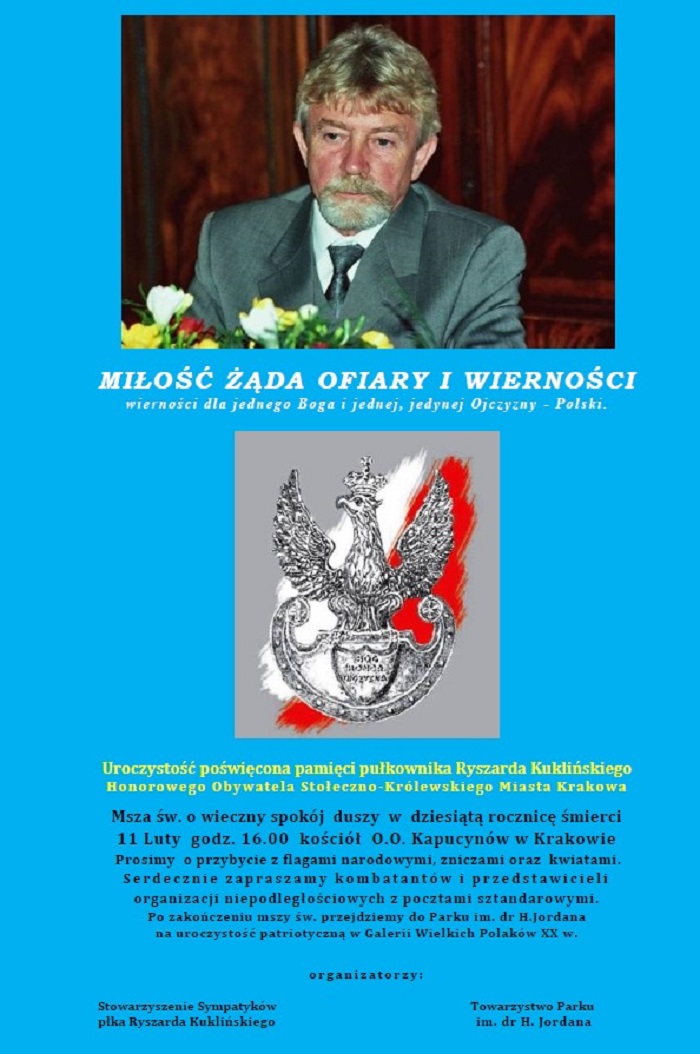 Organizatorzy: Stowarzyszenie sympatyków płk. Ryszarda KuklińskiegoTowarzystwo Parku im. dr H. Jordana