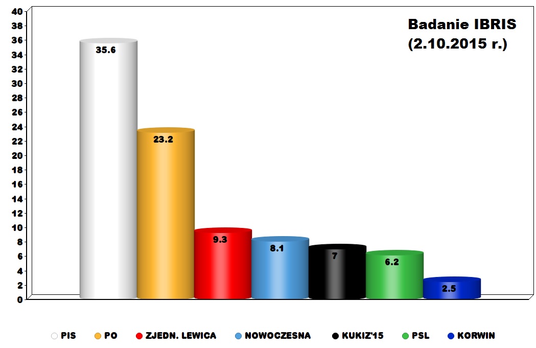 Wg najnowszego badania wykonanie przez pracownię IBRIS wybory wygrałoby PiS, które pozostaje liderem wyborczego wyścigu. Daleko w tyle jest PO, a do sejmu weszłyby jeszcze cztery inne ugrupowania.