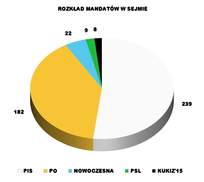 Gdyby faktycznie tak wyglądały wyniki wyborów, PiS miałby 239 mandatów, Platforma 182, Nowoczesna 22, PSL 9, a Ruch Kukiza 8.