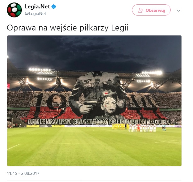 "Podczas Powstania Warszawskiego Niemcy zabili 160 tys. ludzi. Tysiące z nich to były dzieci"- taką wiadomość wysłali "w świat" kibice Legii.