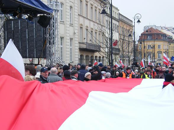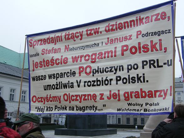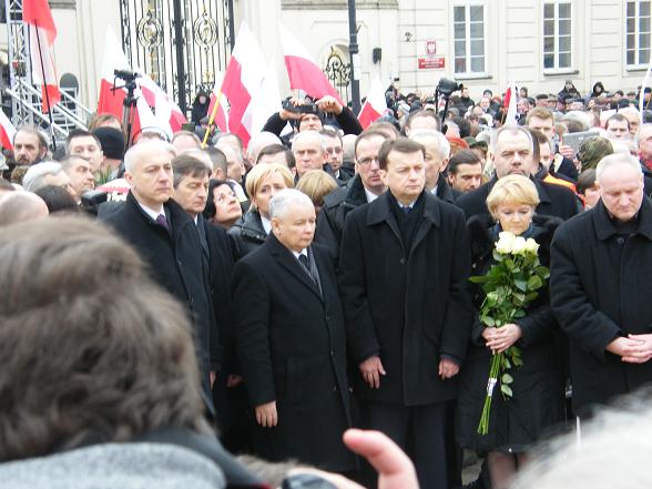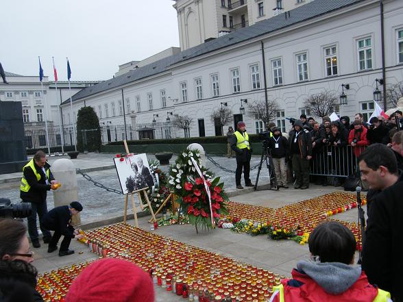 Stajemy tutaj, aby polecić dusze naszego prezydenta Lecha i jego żony Marii, a także innych pasażerów tego tragicznego lotu. Przychodzimy tutaj w imię Jezusa Zmartwychwstałego, pamiętamy o słowach Apelu Jasnogórskiego: „Jestem, pamiętam, czuwam”. Jesteśmy, pamiętamy, czuwamy. Jesteśmy tu, aby w tym miejscu wydeptać miejsce na pomnik. Są tacy, którzy mówią, że nie ma miejsca na pamięć. Swoją obecnością chcemy pokazać, że jest – powiedział rano przed Pałacem Prezydenckim w obecności Jarosława Kaczyńskiego i parlamentarzystów PiS o. Zdzisław Tokarczyk, kapucyn. Odczytano imiona i nazwiska ofiar katastrofy smoleńskiej, złożono wieńce, zapalano znicze. Było spokojnie i godnie.