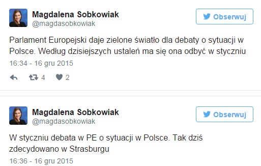 Jak informuje na Twitterze brukselska korespondentka TVP Magdalena Sobkowiak, Parlament Europejski daje zielone światło dla debaty o sytuacji w Polsce.
