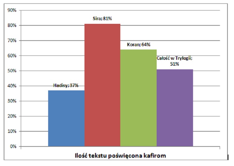 Ile podobnych cytatów skierowanym przeciwko niemuzułmanom można znaleźć w islamskiej Trylogii? Warner wyliczył to skrupulatnie i podał w procentach: