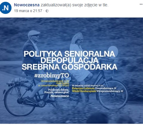 "POLITYKA SENIORALNA, DEPOPULACJA, SREBRNA GOSPODARKA- #zrobimyTO"- głosi hasło, które pojawiło się na grafice opublikowanej na OFICJALNYM profilu ugrupowania Katarzyny Lubnauer na Facebooku!