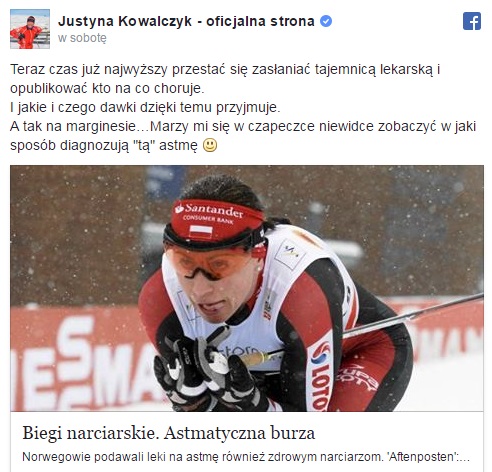 Norweski „Aftenposten” udowodnił, że Norwedzy podawali zdrowym zawodnikom leki na astmę, które skutkowały lepszymi wynikami. Wprost o doping Norwegów oskarżają Szwedzi i Finowie. –Czas powiedzieć, że Kowalczyk miała rację w sprawie astmy – stwierdził komentator "Aftenposten".