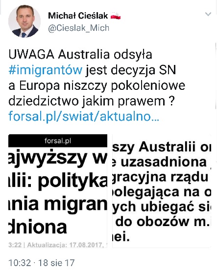 W tym samym czasie Europa przyjmuje tłumy roszczeniowych muzułmanów niszcząc europejską kulturę i narażając społeczeństwo - komentuje poseł Michał Cieślak