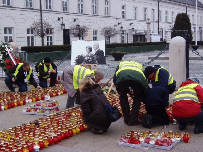 Kilka minut po ósmej na Krakowskim Przedmieściu nie ma jeszcze tłumów. Już jednak rozstawione są znicze, już stoi krzyż i już powiewają biało-czerwone flagi. Ludzie, często przed pracą, w pośpiechu, stają przed Pałacem Prezydenckim, modlą się i biegną dalej. Ale pamiętają, modlą się, rozmawiają. W ciągu tych kilkunastu minut, jakie spędziłem tam rano spotkałem ludzi z Londynu, Stanów Zjednoczonych, katolików i ewangelików (pozdrowienia dla nich), starszych państwa i kibiców, którzy o nowym papieżu mówili, że to „świetny transfer”. A wszystkich ich sprowadziła tam obowiązek pamięci i świadomość, że ta sprawa wciąż nie jest wyjaśniona, że bez jej wyjaśnienia nie można dalej budować Polski.