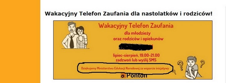 Na swojej stronie internetowej MEN informuje: "WAKACYJNY TELEFON TAKŻE DLA RODZICÓW" i podaje szczegółowe informacje: "507 832 741 – to numer telefonicznej poradni dla młodzieży. Z problemami mogą się tam także zgłosić dorośli, pracujący na co dzień z młodymi ludźmi.