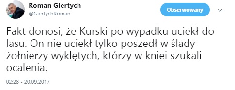 Roman Giertych bardzo chciał błysnąć dowcipem. Internauci jednak tego nie docenili. Z jakiego powodu? Były polityk stwierdził, że prezes TVP "poszedł w ślady żołnierzy wyklętych".