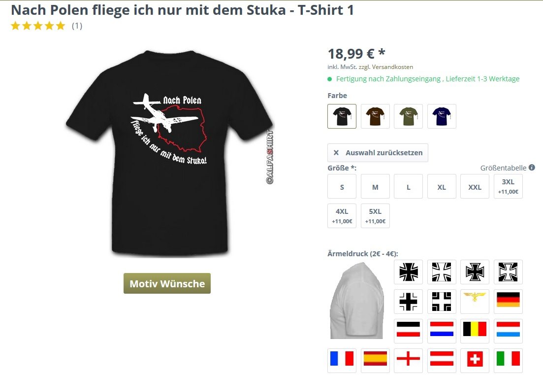 „Do Polski latam tylko sztukasami” - taki oburzający napis pojawił się na koszulkach oferowanych przez jeden z niemieckich sklepów.
