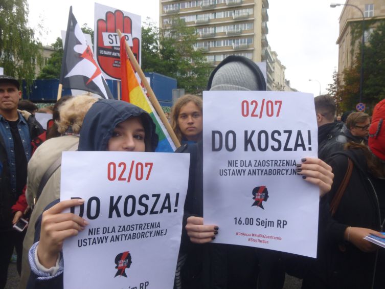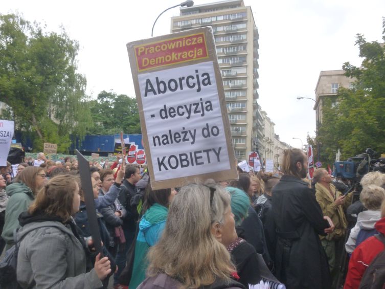Wśród transparentów zwolenników aborcji można było dojrzeć plakaty z hasłami „aborcja jest OK”. „moja macica moja sprawa” (które pokazuje niekonsekwencje zwolenniczek aborcji, które chcą by podatnicy im finansowali aborcje i antykoncepcje), „dość piekła kobiet”, „studentki za prawem do aborcji”, plakaty trockistowskiej Pracowniczej Demokracji, Amnesty International, transparenty Obywateli Solidarnych w Akcji.