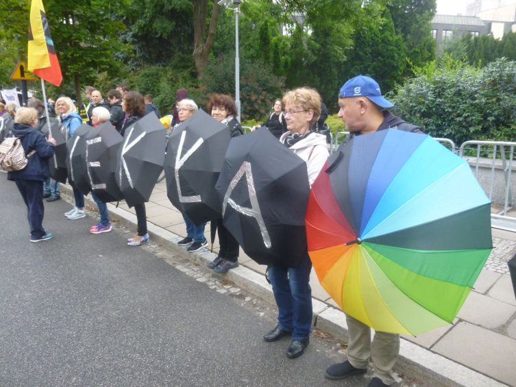 Na transparentach przeciwników aborcji można było przeczytać „aborcja zabija dzieci”, „500 dziewczynek rocznie zabijają aborterzy”, „tak dla życia”. Ja na swoim transparencie miałem hasła „aborcja to nazizm i morderstwo” (z przekreśloną czarną flagą, która powstała z przekreślonej swastyki, którą policja pomimo przekreślenia nakazała mi zamalować na Marszu dla Życia i Rodziny) i „prawa człowieka od poczęcia”.