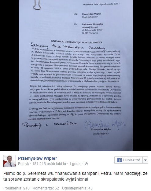 To jednak jeszcze nie koniec. W związku z ujawnieniem treści maili przez Stonogę Przemysław Wipler z partii KORWIN zaapelował o zbadanie sprawy finansowania partii przez prokuraturę. Zdaniem polityka przedstawione przez Zbigniewa Stonogę informacje stanowią mocny dowód, któremu należy się przyjrzeć.