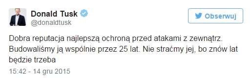 Przewodniczący Rady Europejskiej napisał dziś na swoim koncie na Twitterze, że Polska może stracić dobrą reputację na arenie międzynarodowej, którą budowała przez wiele lat.