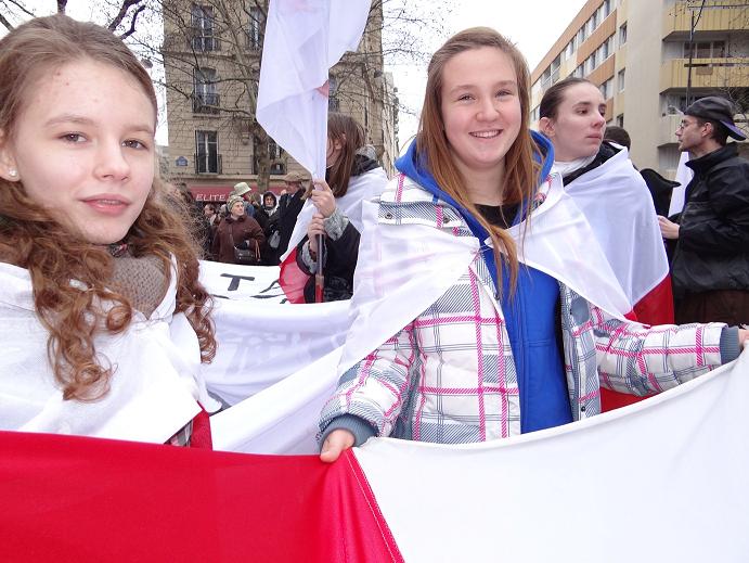 Nas pojechało blisko 60 osób ze Szczecina i Polic z Bractwa Małych Stópek, Katolickiego Stowarzyszenia „Civitas Christiana” i Federacji Ruchów Obrony Życia. Byliśmy jedyną tam tak wyrazistą i liczną grupą Polski. Wyróżnialiśmy się długą prawie 10-metrową polską flagą, jednakowymi biało – czerwonymi chustami i niesionymi w dłoniach narodowymi flagami. Gdy udzielałam wywiadu przysłuchiwała się z uwagą temu, co mówiłam jedna kobieta. Okazało się, że była Polką mieszkającą we Francji. Rzuciła mi się ze wzruszeniem na szyję, i dziękowała za naszą obecność i wsparcie, że tak pięknie reprezentujemy nasz kraj. Francuzi widzieli, że jesteśmy z nimi w ich walce, cieszyli się tym. Pokazywali to na różne sposoby, poprzez gesty czy wspólne zdjęcia z nami. Polacy, którzy mieszkają od lat we Francji dziękowali i wyrażali podziw, że chciało nam się przyjechać na marsz z tak daleka, pytali z jakiego miasta jesteśmy. Co chwilę otrzymywaliśmy jakieś gesty wdzięczności.