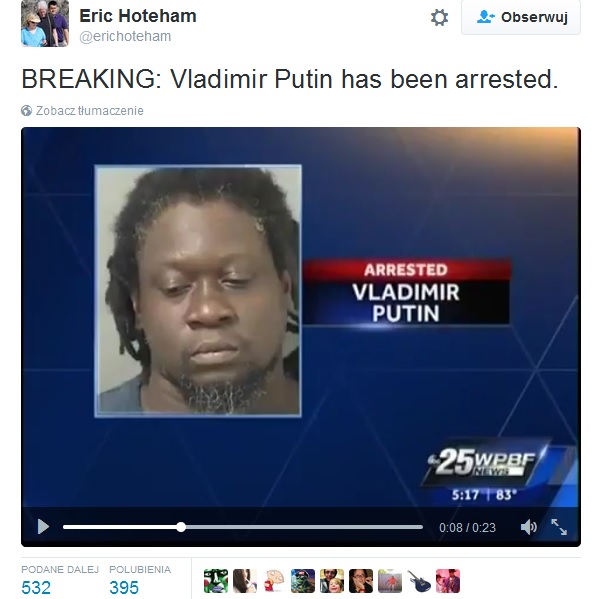 Choć aresztowany w niczym (poza imieniem i nazwiskiem) nie przypomina prezydenta Federacji Rosyjskiej, informacja musiała wzbudzić w mediach niemałą sensację. Dziennikarka w programie WPBF, podając informację o aresztowaniu Władimira Putina, szybko dodała: "Nie, nie chodzi o prezydenta Rosji".