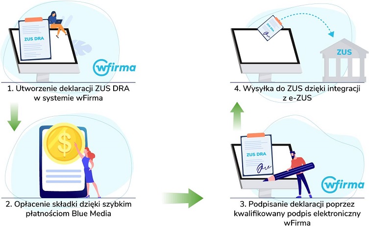 W systemie, deklarację ZUS DRA podpisuje na nasze zlecenie pracownik serwisu. Przed pierwszą wysyłką pliku przedsiębiorca weryfikuje narzędziem Blue Media wiarygodność danych osobowych. Wszystko to jest zgodnie z najwyższymi standardami bezpieczeństwa.