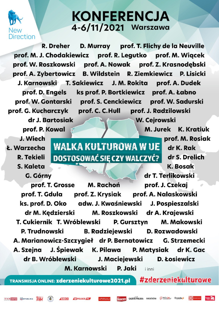 Już jutro w Polsce rozpocznie się wyjątkowe wydarzenie! W dniach 4 – 6 listopada w Warszawie odbędzie się konferencja „Walka kulturowa w UE. Dostosować się czy walczyć?”. To kontynuacja zorganizowanej przez frakcję Europejskich Konserwatystów i Reformatorów konferencji, która w 2020 roku odbyła się na Stadionie Narodowym pod tytułem „Zderzenie kulturowe w UE. Czy Polska ma szansę?”. Patronat nad wydarzeniem objął portal Fronda.pl.