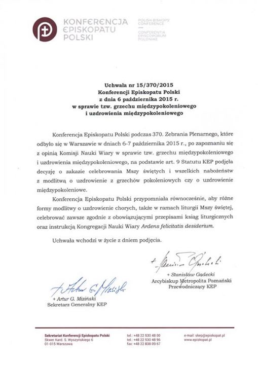 Episkopat Polski wydał uchwałę w sprawie tzw. grzechu międzypokoleniowego i uzdrowienia międzypokoleniowego.